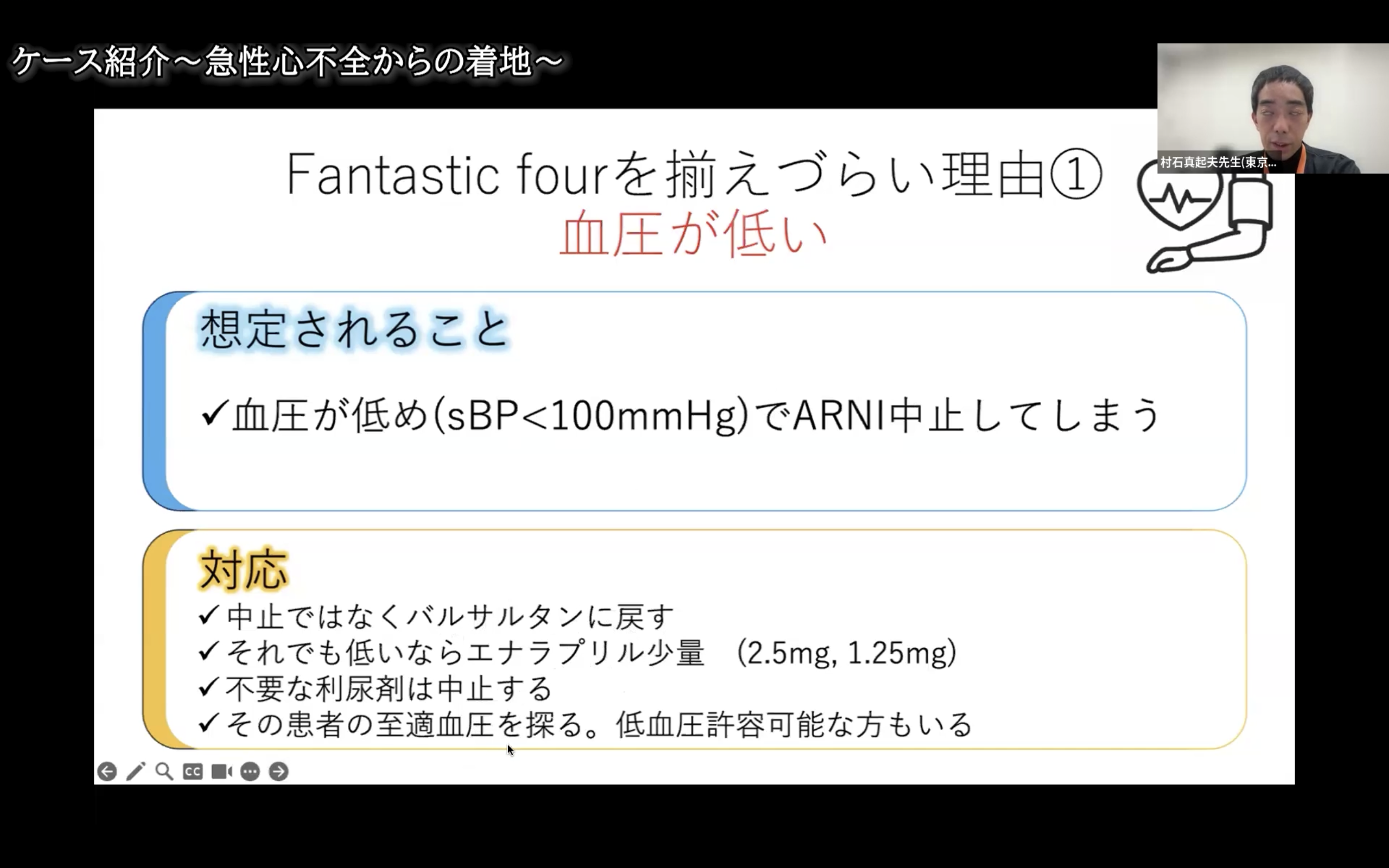 心不全パンデミックはまだまだ終わりが見えません。そして心不全にはファンタスティック4という強力なツールが登場しました。しかし現場では様々な課題があります。例えば、初診の外来では何からどのように導入するのか。紹介先の病院からクリニックに戻ってきた症例、何をどの程度調整してよいのか。
